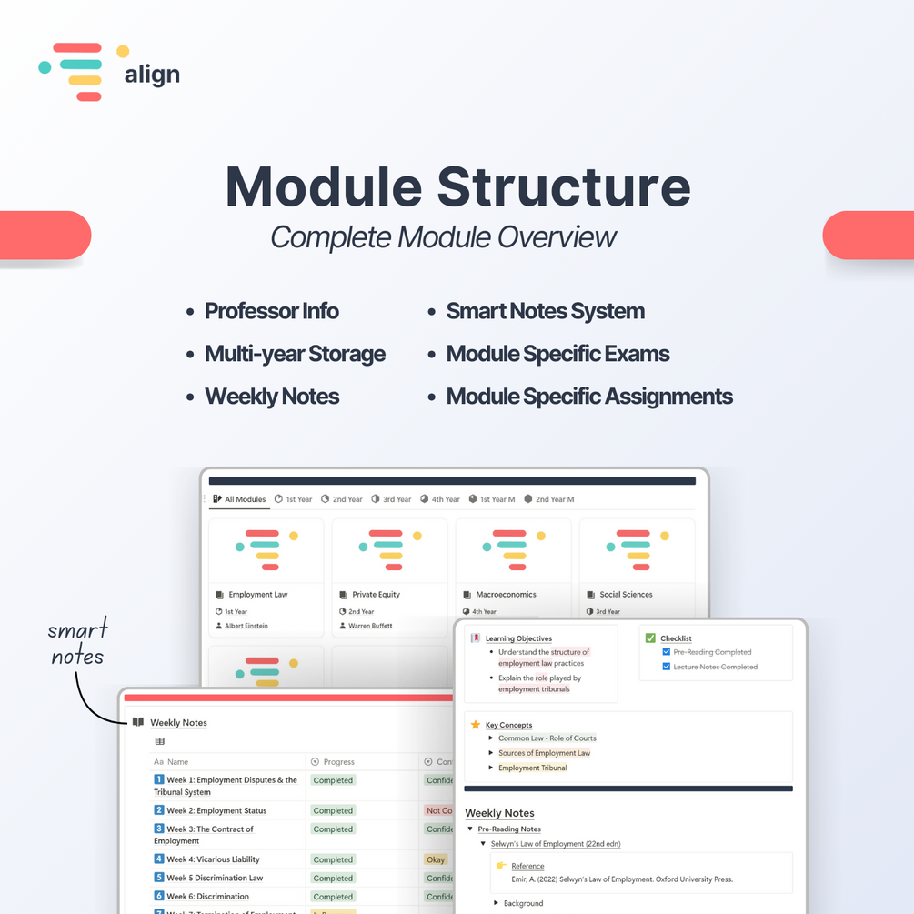- Module Tracking Made Simple: Effortlessly manage lecture notes, assignments, and exam preparation