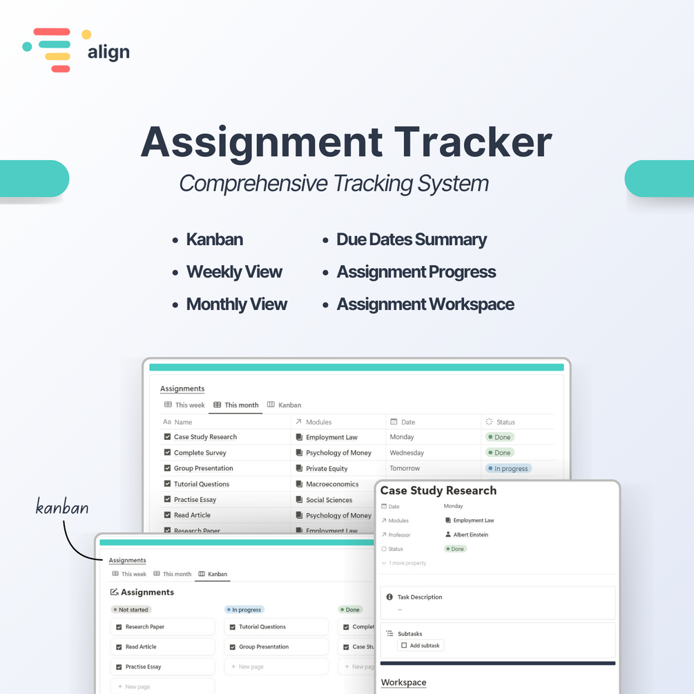 Whether you're tackling case studies, managing group projects, or preparing for crucial presentations, this Notion template is your ultimate academic ally. It's more than just a planner – it's a comprehensive system designed to elevate your university experience.